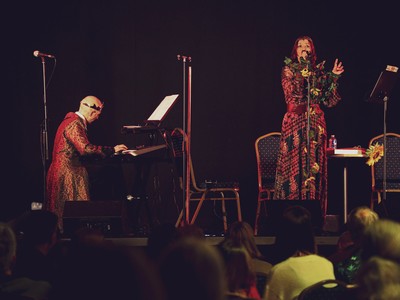 Formed in 2017 by Mark Sheeky & Deborah Edgeley, Fall in Green perform contemporary spoken-word poetry combined with music in an act that is everything from art performance, to classical lieder, to progressive rock. Their subjects vary from the humorous to the dark and surrealistic, as they use props, projection, and costume to create a unique show.